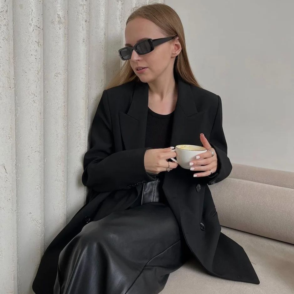 Free People’s black basics have become staples in my wardrobe. The Cosabella Flirtie Bandeau Bra is the perfect underpinning for low-cut tops or sheer blouses, adding a hint of allure. For a more polished look, the Havre Mini Skirt Suit, featuring a black blazer, strikes the ideal balance between professionalism and style. The ensemble is perfect for transitioning from work to evening events seamlessly.